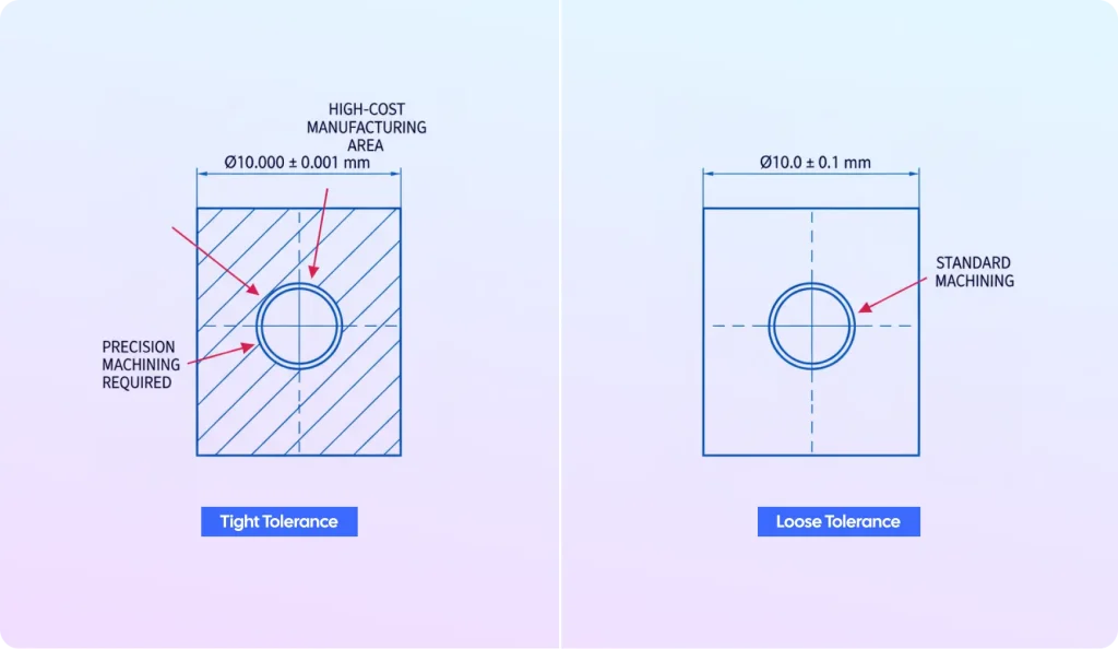 Core Principle: Looser Tolerances Cost Less In engineering, a tight tolerance means a dimension must be held to a very small deviation (e.g., $\pm 0.001$ inch). While often necessary for mating parts or precision components, specifying tighter tolerances than functionally required is a massive waste of production budget.